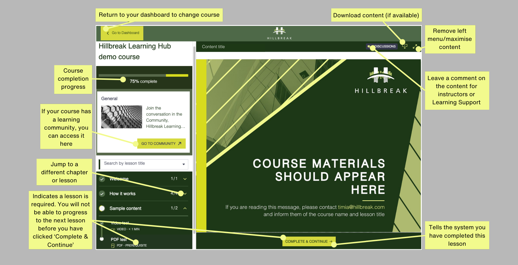 We will enrol you onto the Hillbreak Learning Hub where you will be able to access all the materials used in your course. A welcome email will be sent from: The Hillbreak Learning Hub ([email protected]). There’s a small possibility that this will divert to your spam folder so please check that location if you are expecting an enrolment but no email has arrived.